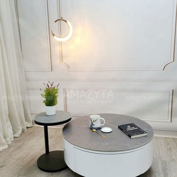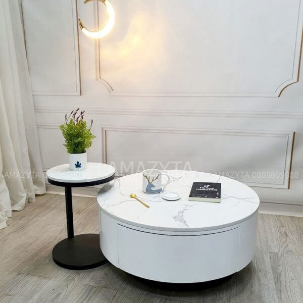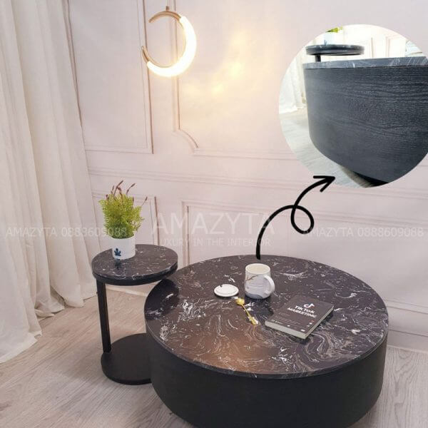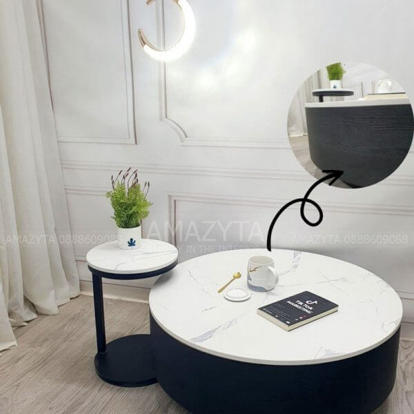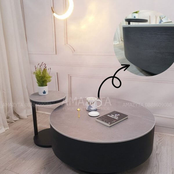 Bàn trà cặp dạng hộp tròn ABT-70 mặt đá thường và Ceramic