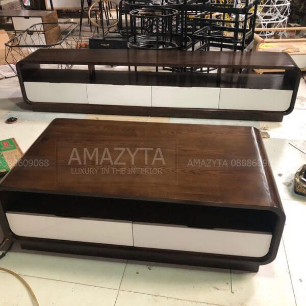 Cặp bàn trà và kệ ti vi đồng bộ đẹp sang trọng AMT-654