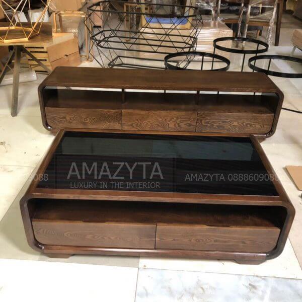 – Màu sắc tự chọn – Kệ tivi 6 ngăn, bàn trà 3 ngăn – Khung gỗ sồi nhập khẩu |