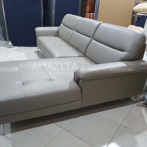 Mẫu ghế sofa góc L AML-324 với kiểu dáng đơn giản phù hợp với các phòng khách chung cư hiện đại. Da bọc ngoài sử dụng mẫu da HDTech bền đẹp, có khả năng chống thấm nước và bám bụi sạch sẽ.