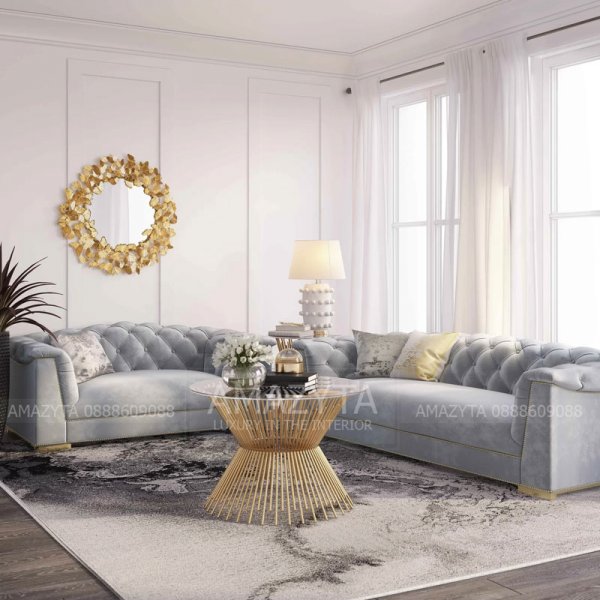 Mẫu ghế sofa tân cổ điển với chân ghế thấp AMC-863