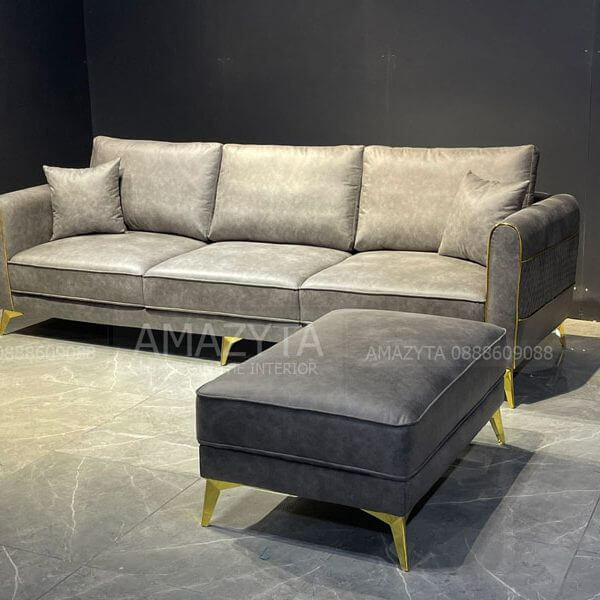 Mẫu ghế sofa văng ba chỗ ngồi AMB-360 có kèm đôn chữ nhật
