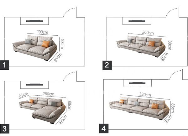Kích thước có thể tham khảo 8 kiểu biến tấu một chiếc ghế sofa:
