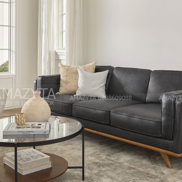 Hình ảnh cận cảnh ghế sofa da bò Ý cao cấp AMZ2-8069